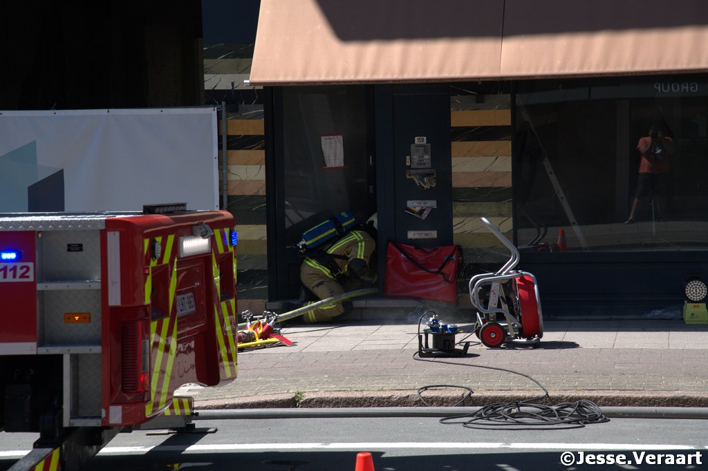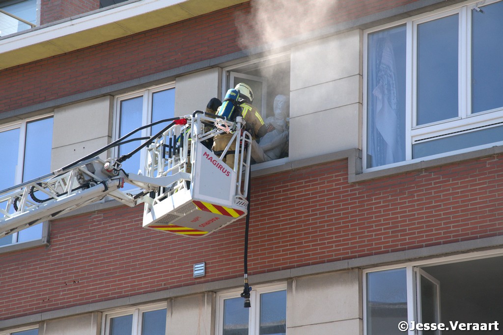 Er was een brand gesimuleerd in een leegstaand appartemengebouw op de 1ste verdieping.