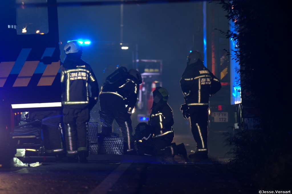 De brandweer zone Rand kwam met verschillende posten ter plaatse om de hevige brand te blussen, ook kwamen er extra tankwagens en een buffer container ter plaatse.