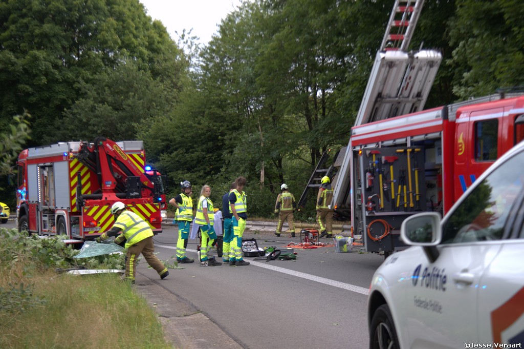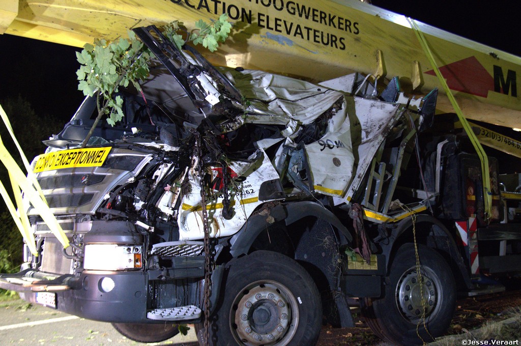 De hoogtewerker van 90M kwam in de middenberm terecht, de Brandweer Zone Rand posten Zoersel en Zandhoven kwamen ter plaatse maar het was een Moeilijke Bevrijding omdat ze niet aan de chauffeur konden door de arm van de hoogtewerker, daarbij is een kraan van takeldienst Struyf, ter plaatse moeten komen.
