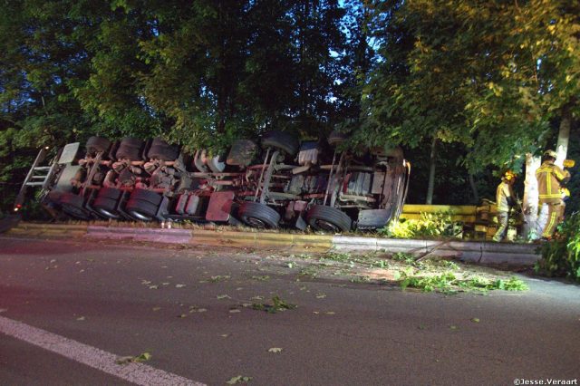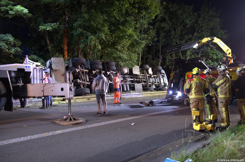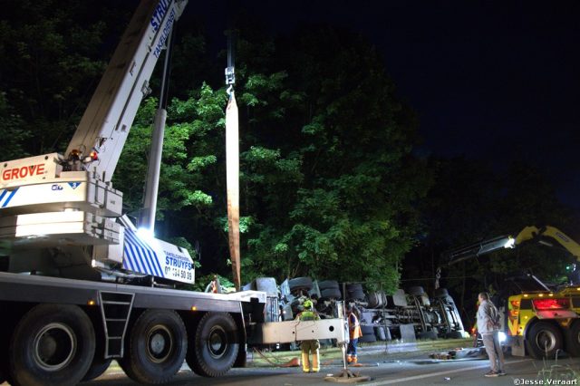 De takelwerken hebben tot 01:30 uur geduurd om het zware gevaarte te takelen.